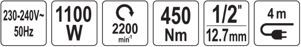 Электрычны ўдарны гайкакрут 1/2", 1100W, 450Nm, Sthor (57092)