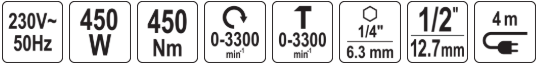 Электрычны ўдарны гайкакрут 1/2 " 450W 450nm YATO (YT-82020)