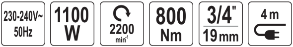 Электрычны ўдарны гайкакрут 3/4", 1100W, 800Nm, Sthor (57097)