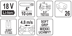 Акумулятарная садовая ланцуговая піла 18V, 4", 2AH YATO (YT-828135)