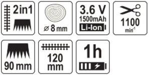 - Шырыня насадкамі для стрыжкі травы: 90 мм.