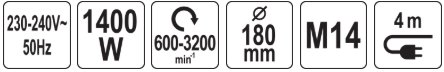 - Дыяметр працоўнага дыска: 180 мм.