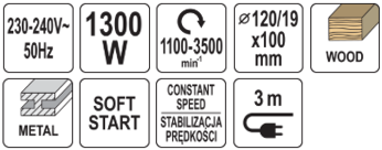 - Электроннае рэгуляванне хуткасці кручэння: 1100-3500 аб/хв.