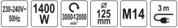 Вуглашліфавальная машына 125мм, 1400Вт, YATO (YT-82098)