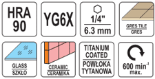 - Матэрыял наканечніка: карбід вальфраму YG6X