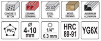 Набор універсальных свердлаў 4,0-10,0 мм, хвост. HEX 1/4", YATO (YT-44789)