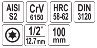 - Пасадачны памер: 1/2" (12,7 мм).