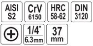 - Цвёрдасць: 58-62 HRC.