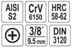 - Пасадачны памер: 3/8" (9,5 мм).