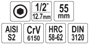 Матэрыял рабочай часткі выкананы са сталі AISI S2 з нікелевым пакрыццём.