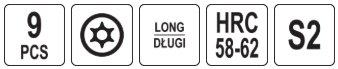 T10, T15, T20, T25, T27, T30, T40, T45, T50