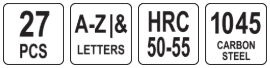 Набор ўдарных літарных клеймаў 6мм, 27шт, YATO (YT-6862)
