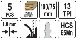 Палотны для электралобзіка па дрэве 13 TPI, 5шт YATO (YT-3407)