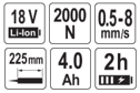 - Літый-іённы акумулятар 18V 4,0Ah.