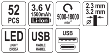 Аккумуляторная мини- шлифмашинка 3.6V, 1.5Ah, с оснасткой, YATO (YT-82763)