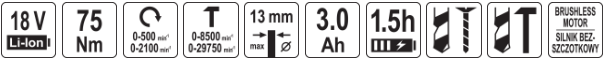 Бесщеточный ударный шуруповерт 18V, 75Nm, 2х3,0Ah YATO (YT-82791)