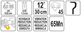 Режущая цепь 3/8", 12", 45, 0.05", YATO (YT-849495)