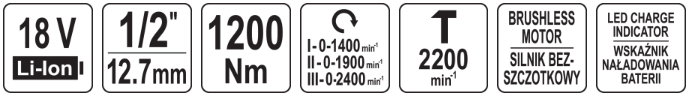 Аккумуляторный бесщеточный ударный гайковерт 18V, 1/2'', 1200Nm без АКБ YATO (YT-828072)