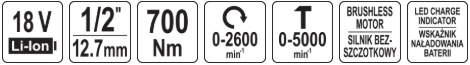 Аккумуляторный бесщеточный ударный гайковерт 18V, 1/2'', 700Nm, без АКБ YATO (YT-828061)