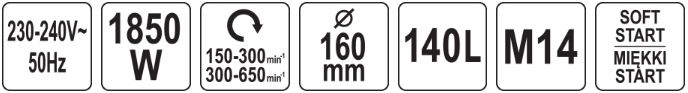 -Электронная регулировка скорости вращения: 150-300 об/мин (I), 300-650 об/мин (II).