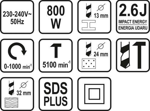 - Количество ударов [1/мин]: 5100