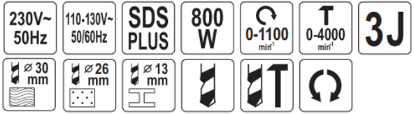 Перфоратор SDS Plus, 800W, 3.0J, YATO (YT-82121)