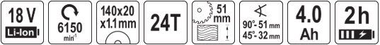Аккумуляторная циркулярная пила 18V, 140мм, 2х4Ah YATO (YT-8281185)