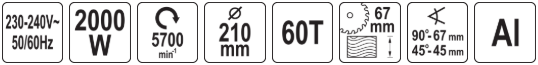 -Макс. глубина резания: 67мм/90˚, 45мм/45˚.