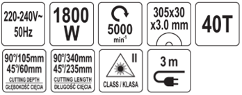 -Угол продольной резки: возможно выставление головки в диапазоне +/- 45°. Для облегчения регулировки угла наклона режущей головки, инструмент имеет шкалу с фиксирующим механизмом, позволяющим быстро и легко установить наиболее распространенные углы: 0°; 15°; 22,5°; 31,6°; 45°.