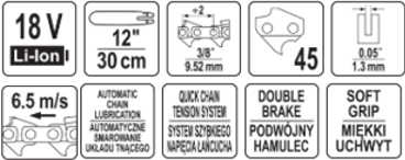Питание пилы происходит от аккумуляторов системы YATO 18V, которые, благодаря защите от перегрузок, долговечны и сохраняют свою токовую емкость в течение всего срока эксплуатации.