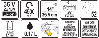Цепная пила аккумуляторная 36V, 14'', без АКБ YATO (YT-82813)