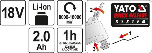 Система 18 В - это серия аккумуляторных инструментов YATO, которые питаются от одной и той же прочной батареи. Вы можете купить устройства в комплекте с аккумулятором и быстрой зарядкой или в одиночку, что идеально подходит для расширения набора инструментов