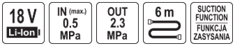 -Давление на выходе: 2,3 MPa / 23 bar.