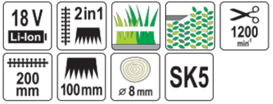 Аккумуляторные садовые ножницы-кусторез 2в1, 18V без АКБ YATO (YT-828356)