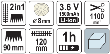-Длина насадки для стрижки живой изгороди: 120 мм.