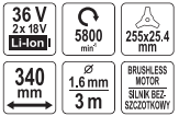 -Ширина реза лески: 340 мм.