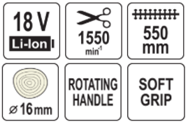 Аккумуляторный кусторез с поворотной ручкой 550мм, 18V, без АКБ, YATO (YT-828334)