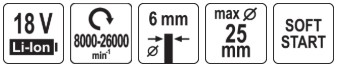 Аккумуляторная бесщеточная прямая шлифмашина 18V, без АКБ, YATO (YT-82824)