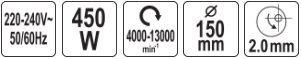 Эксцентриковая шлифовальная машинка 150мм, 450W YATO (YT-82207)