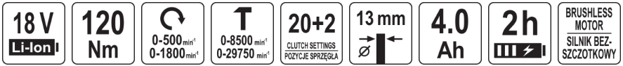 -Возможность использования аккумуляторов YATO 18V: YT-828461 (2 Ач), YT-828462 (3 Ач), YT-828463 (4 Ач), YT-828464 (6 Ач), YT-828465 (9 Ач).