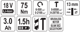 Беcщеточная ударная дрель-шуруповерт YATO, 18V, 75NM, 3,0Ah (YT-82790)