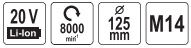 Аккумуляторная углошлифовальная машина 125мм, 20V, 2Ah, Sthor (арт.78091)