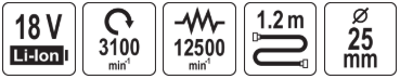 Аккум.глубинный вибратор 18V, с виброшлангом 25мм х 1,2м, без АКБ, YATO (YT-82604)