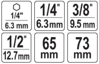 -Размеры квадрата: 1/4" (6,3 мм), 3/8" (9,5 мм), 1/2" (12,7 мм).