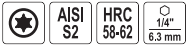 Насадки выполнены из холоднокатаной стали AISI S2 и закалены до твердости HRC 68-62.