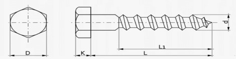Холоднокатаная сталь, шестигранная головка шурупа, крупная резьба, острый наконечник, оцинкованный