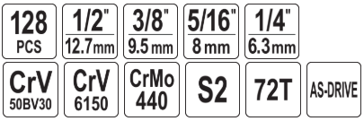Набор инструментов 1/2", 1/4", 3/8" 128пр. YATO (YT-38872)