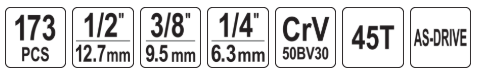 Набор инструментов 1/2", 1/4", 3/8" 173пр. XXL Sthor (58688)