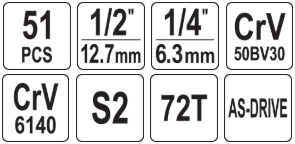 Набор торцевых головок и бит 1/2",1/4", 50пр. YATO (YT-38680)