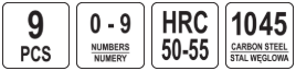 Набор ударных цифровых клейм 8мм, 9шт, YATO (YT-6855)